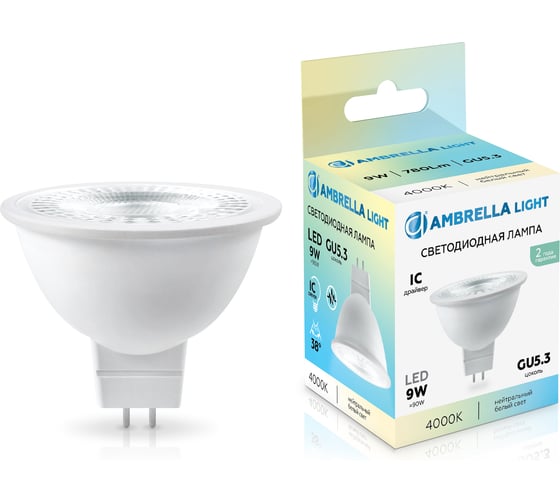 Лампа светодиодная Ambrella Light LED MR16 9W IC GU5.3 4000K 175-265V 38 170904