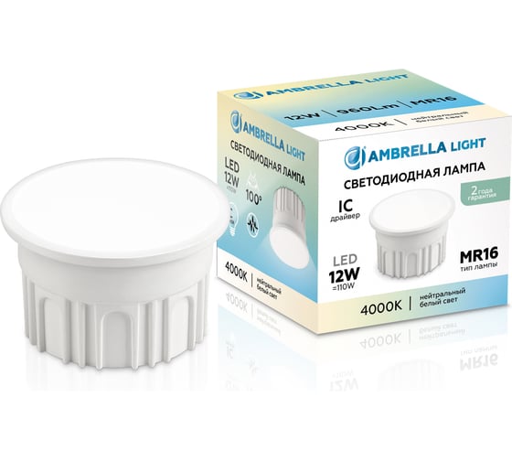 Лампа светодиодная AMBRELLA LIGHT LED MR16-DD 12W IC 4000K 220-240V 100 212102