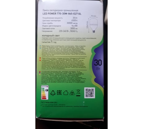 Отзывы о лампе светодиодной ЭРА GREEN LINE LED POWER T7030W865E27 GL Е27 30 Вт колокол холодный свет Б0067061