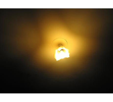 Яркая, одна освещает всю комнату. Свет теплый как у лампы накаливания. Самая эффективная из имеющихся (160 лм/вт!).