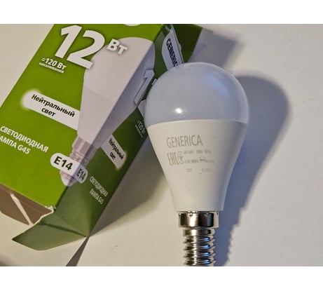 Вопросы и ответы о лампе GENERICA G45 шар 12Вт 230В 4000К E14 LL-G45-12-230-40-E14-G
