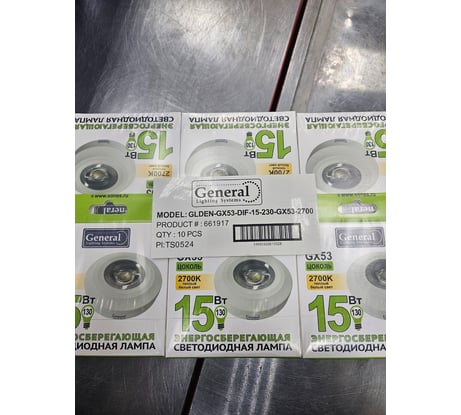 Лампа светодиодная General Lighting Systems General GLDEN-GX53-DIF-15-230-GX53-2700, 1050Лм, 15Вт, 2700К, теплый белый, 10 штук 661917