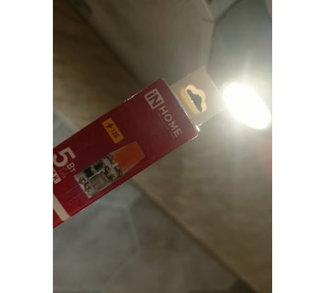Приобретал для замены галогенной в подсветке в вытяжке. Светит ярко, заметно ярче "родной" 20Вт. С размером повезло: эта лампа хотя и несколько длиннее галогенной "колбочки", но все же вошла, впритык уместилась в рефлекторе. Центр источника света, правда, оказался не в центре, как была (крохотная) спираль галогенки, но на яркость и распределение света это, похоже, не влияет. Небольшой запас: у нее усики чуть-чуть длиннее "родных", если их подрезать, могла бы, наверное, чуть глубже войти в патрон, это дало бы еще полмиллиметра-миллиметр, может быть. Но больше запаса не было, впритык все вошло. В целом доволен, закажу еще одну, для второго светильника в той же вытяжке.