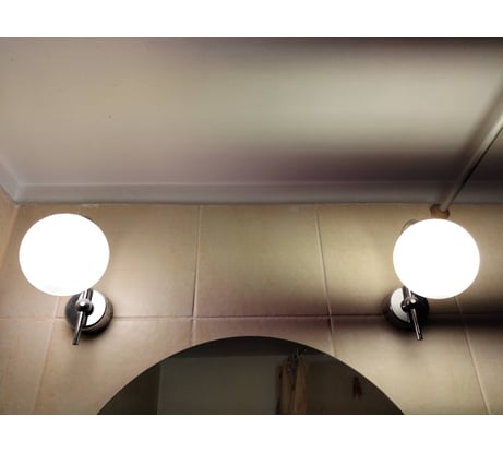 Мерцания не видно. Хотя камера его зафиксировала. А вот световой поток меньше 860. На фото: слева галоген Philips 650Лм, справа - In home led-jcd 9Вт.
