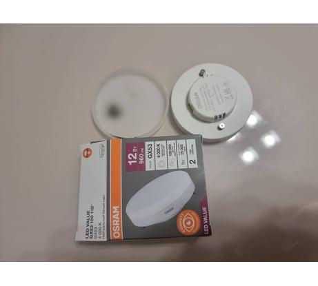 Лампа спот OSRAM серии LED Value с цоколем GX53 . Материал колбы - пластик, исполнение - матовое. Световой поток 960 люмен, что соответствует лампе накаливания на 100 Вт. Подобные лампы используются для внутреннего освещения.