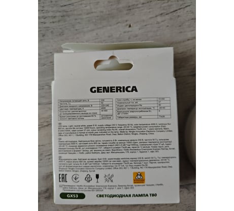 Вопросы и ответы о лампе GENERICA T80 таблетка 12Вт 230В 4000К GX53 LL-T80-12-230-40-GX53-G