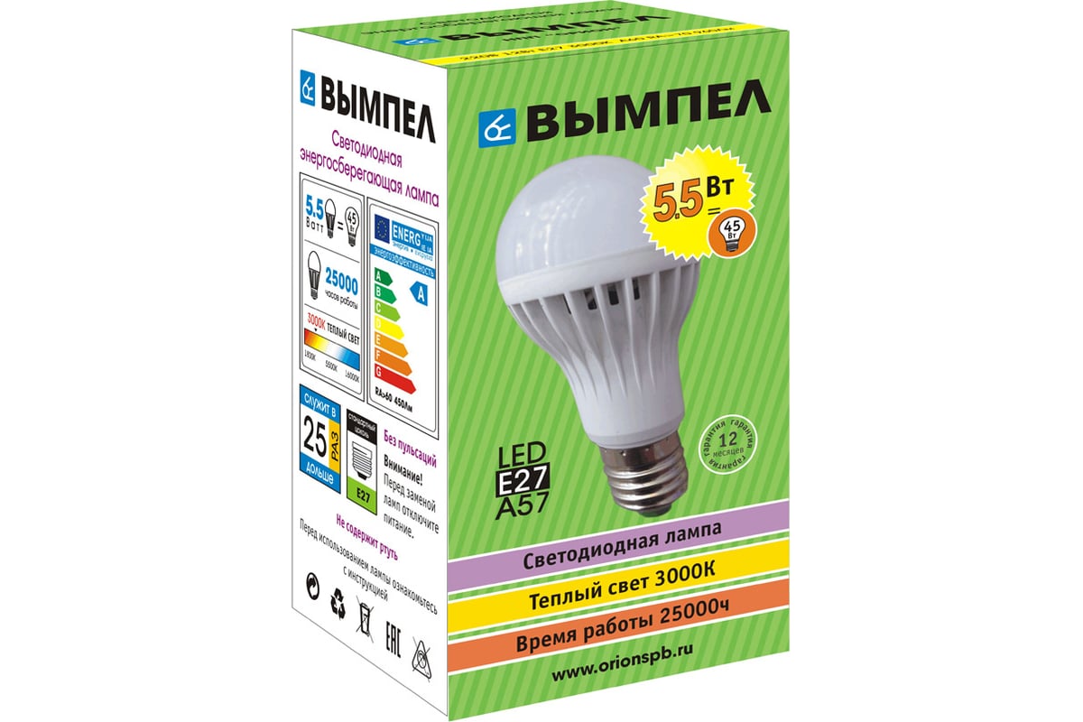 Вопросы и ответы о лампе Вымпел А57, Е27, 5,5Вт, теплый свет, пластиковый корпус 9023