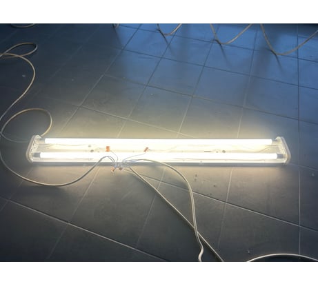 Эти лампы вполне подходят для досвечивания растений как отличная и недорогая альтернатива фитолампам. При этом никакого раздражающего фиолетового света, просто обычный белый свет. Греются слабо и только в самом верху - где к трубке прилегает светодиодная лента, сама же трубка остаётся вообще холодная. Подключаются без стартера напрямую в сеть - провода на РАЗНЫЕ концы лампы, т.е. два штырька на одном конце трубки - это ОДИН контакт. Трубка стеклянная.