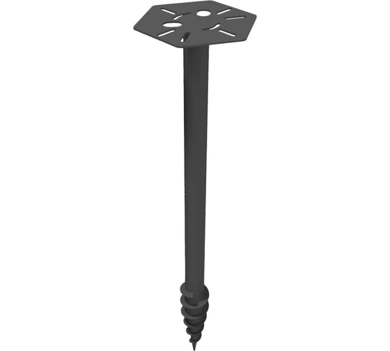 Колышек для установки в грунт имеет литой стальной наконечник типа "шуруп", который обеспечивает уверенное и лёгкое закручивание, а качественное порошковое покрытие защищает от коррозии на долгие годы.
