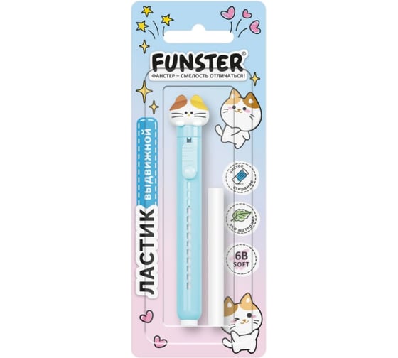 Ластик выдвижной с топпером + 1 сменный ластик FUNSTER 274021