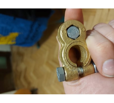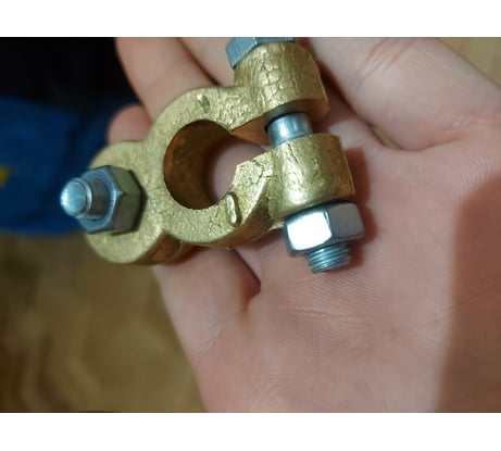 Главным плюсом является то, что данные клеммы сделаны из латуни и имеют приличный весь и толщину Недостатком же является качество литья: куча необработанных краёв, не снятые фаски, поверхность в паутинке Так же недостатком является то, то литьё так же имеет дефекты: кратеры и пустотелые полости внутри отливки, и данный недостаток, в отличие от не снятых фасок, уже имеет значение, так как сильно влияет на прочность конструкции Из мелких недостатков: болты затяжки ничем не контрятся, поэтому Вам необходимо будет 2 ключа на 13, одним держать болт, другим закручивать гайку
