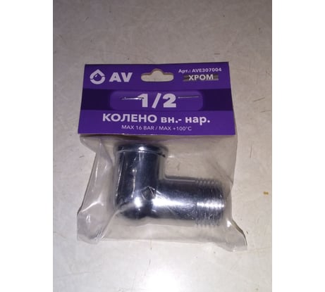 Латунный угольник AV Engineering внутренняя-наружная 1/2 хром AVE307004 На страницу товара275 ₽