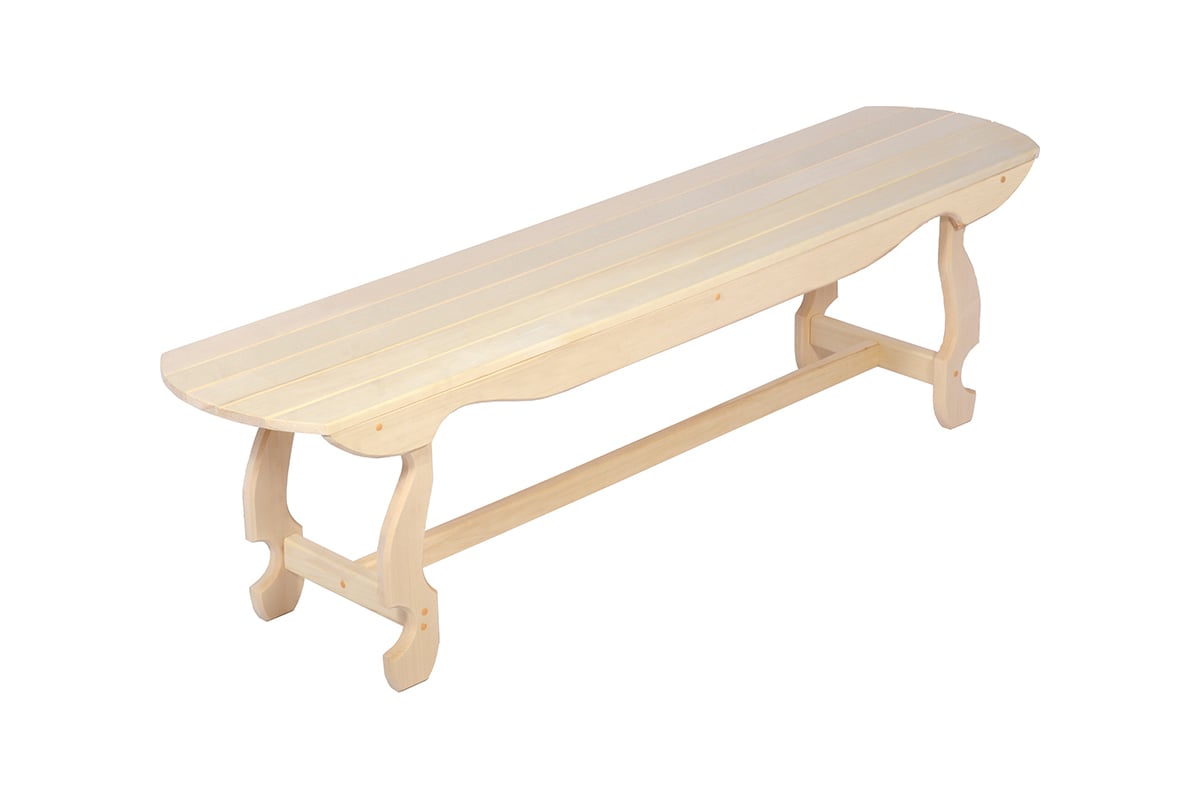 Лавка с фигурными ножками Банные штучки 160х40х43.5 см 32454 идеально подходит для комнат отдыха в бане и сауне. Сделана из липы. Закругленные углы позволяют избежать травм и царапин. Липа характеризуется низкой теплопроводностью, высокой прочностью, имеет лечебные свойства и приятный запах, который полезно вдыхать. Хорошо переносит повышенную влажность.