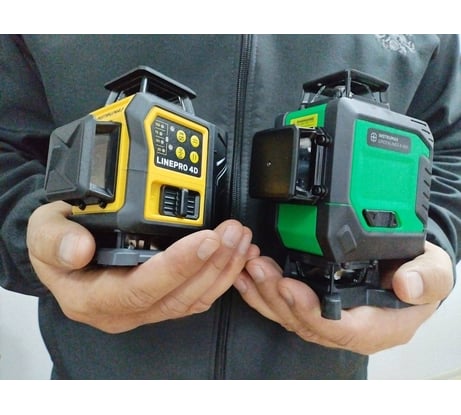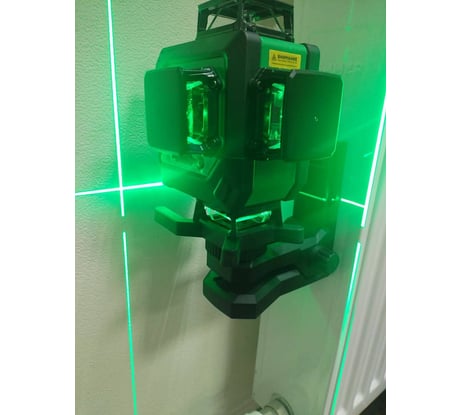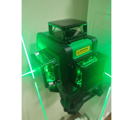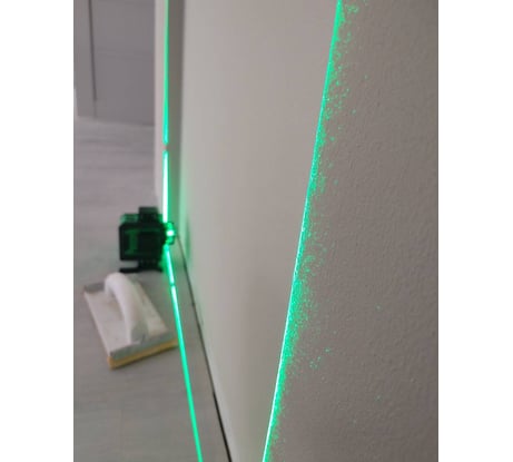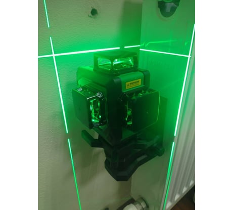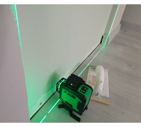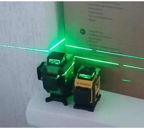 Проекция 4х взаимно перпендикулярных ярких зеленых линии обеспечивают быструю и удобную разметку помещения. Вне зависимости от сложности задачи, работа под потолком, впритирку к стенам или минимальное отклонение от нулевой точки пола данная модель подойдёт лучше прочих.