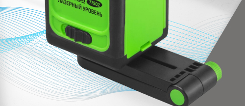 Прибор проецирует два ярких зелёных, пересекающихся под прямым углом луча, на расстоянии до 30 метров.