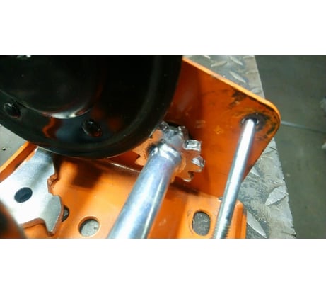 Вроде качественно сделана, проверим, как она в работе. Барабан можно фиксировать тормозом как вперёд, так и назад. Ручка вращения удобная. Взял для опускания-поднятия мотобура на стойке.