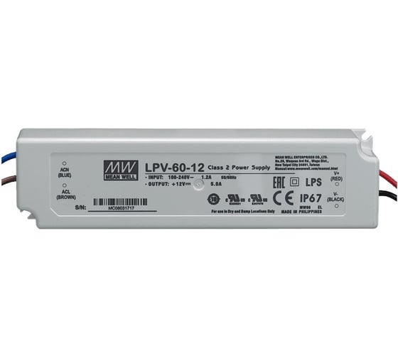 Вопросы и ответы о led-драйвере Mean Well LPV-60-12 AC-DC 60Вт Т00285472