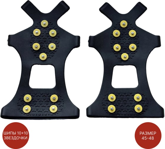 Десять стальных шипов на каждой подошве, оснащенных твердосплавными вставками, обеспечивают максимальное сцепление с льдом и устойчивость, защищая вас от падений в гололед.