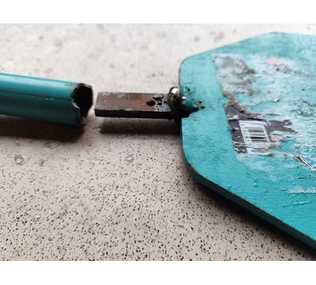 Хватило на час спокойной работы, в один момент топорище осталось во льду, а ручка у меня в руках. Я уж было обрадовался беспроводному ледорубу, но эффективности это не добавило, зато как эффектно... Благо, сварка есть. Сварщику с производства удачи.