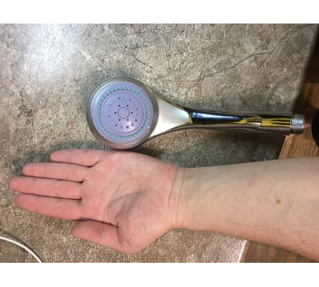 Очень маленькая лейка, размер с половину ладошки. При подключении и подачи воды начала издавать свист. Переключатель режима после нескольких раз просто отвалился.