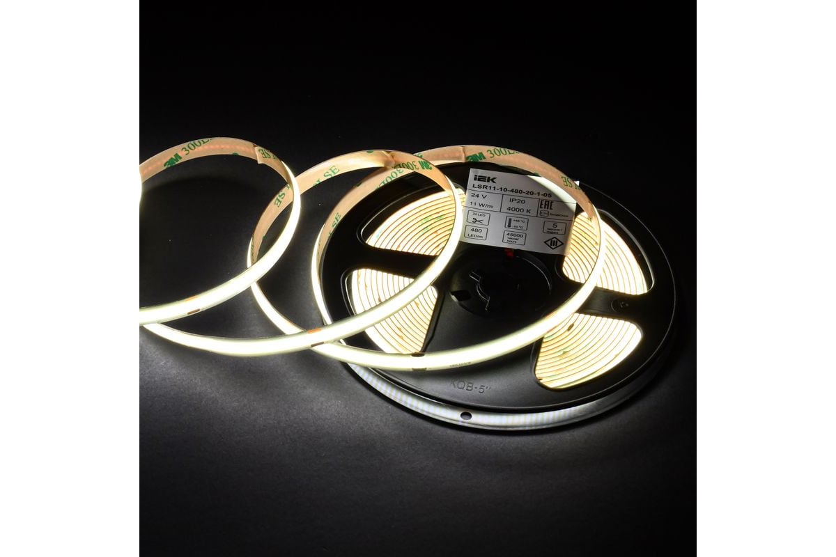 Лента LED IEK 5м COB-480LED 11Вт/м IP20 8мм 24В 4000К LSR11-10-480-20-1-05