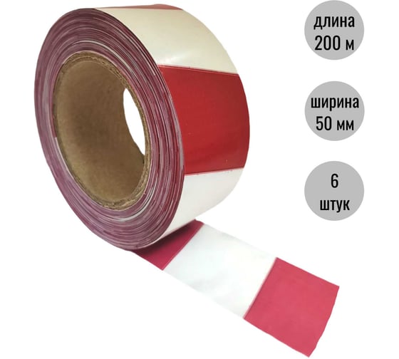 Лента оградительная ООО Пломба.Ру ЛО-200, красно-белый, 200м, 50мм, 35мкм, 6шт в упак, 700064