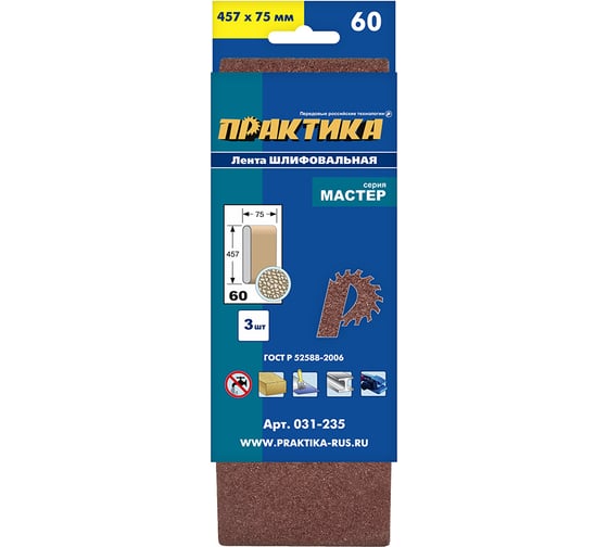 Лента шлифовальная (3 шт; 75х457 мм; P60) ПРАКТИКА 031-235