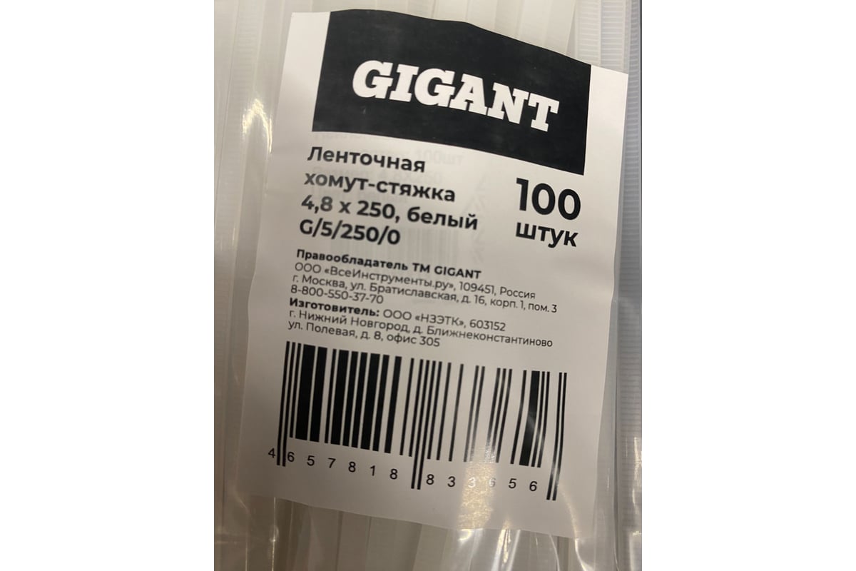 Нейлоновая хомут-стяжка Gigant 4.8x250 белый 100шт G/5/250/0
