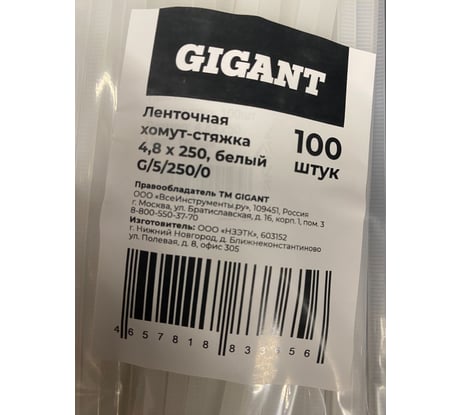Отзывы о нейлоновой хомут-стяжка Gigant 4.8x250 белый 100шт G/5/250/0