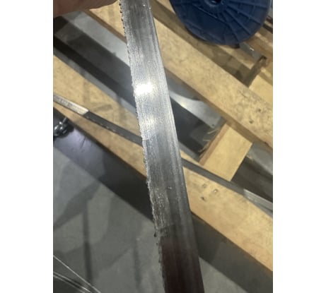Потребовалось резать небольшой кругляк для токарки, а имеющейся отрезной абразивной дисковой пиле от Девольта это не по зубам, поэтому решил попробовать эту ленточку. Скорость реза профильной трубы поменьше чем у отрезной, за то вертикальный рез в отличии от отрезной просто идеальный под 90 градусов. Одним словом доволен.