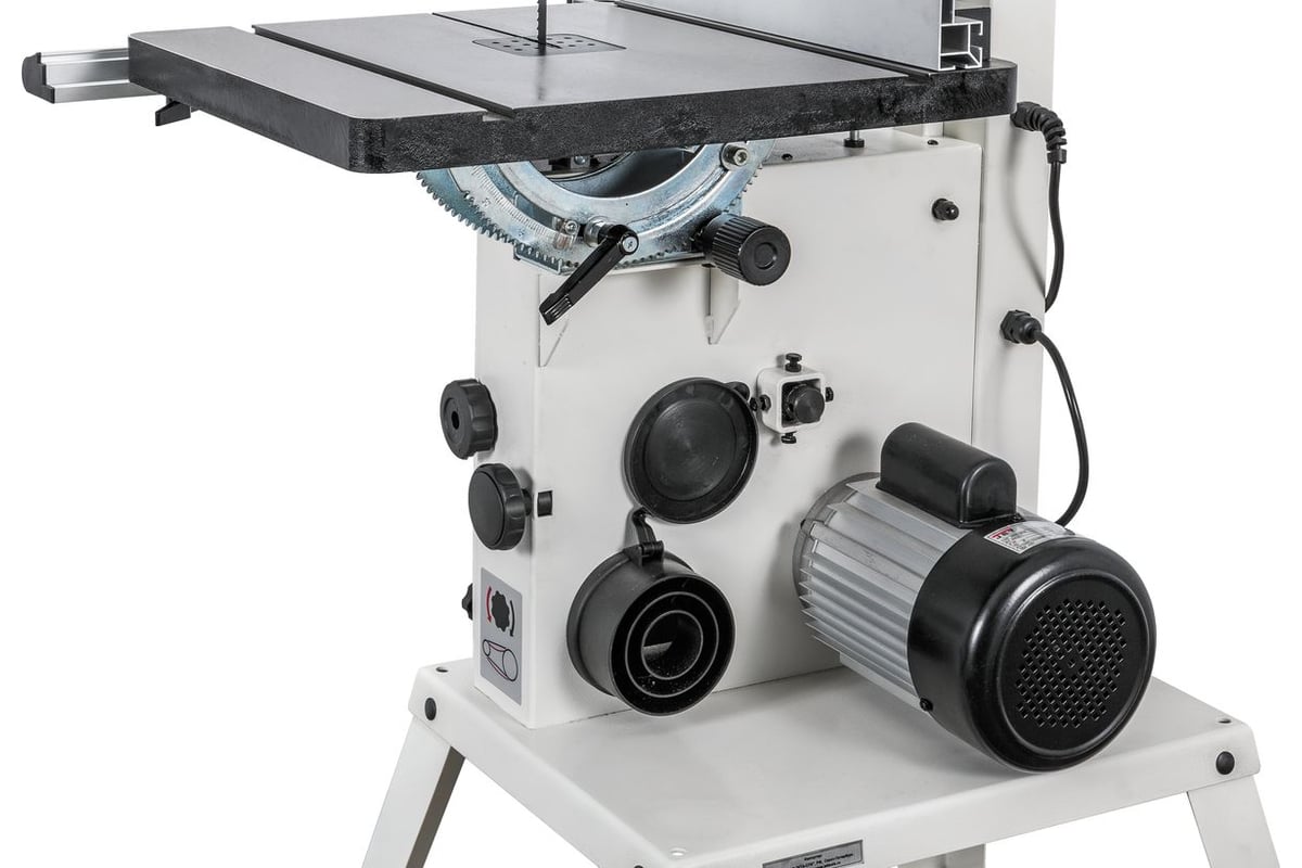 Двухскоростная ременная передача позволяет производить обработку как неплотных пород, так и твердой древесины, склонной к образованию прижогов. Двухпозиционный параллельный упор обеспечивает работу с высокими заготовками при перпендикулярном резе и с плоскими деталями при пилении с наклоном.