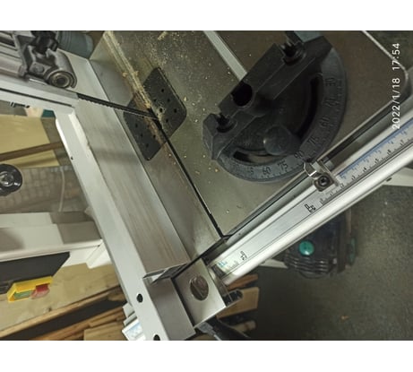 Для нормального выставления упора не хватает разметки на столе, пришлось приклеить две линейки из нержавейки.