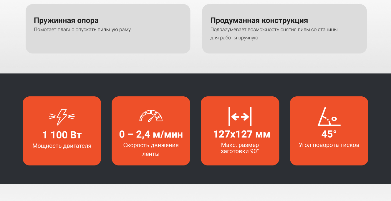 Губки тисков расположены довольно далеко от ленты пилы и как следствие хорошо зажать можно деталь длинной около 100мм и более.