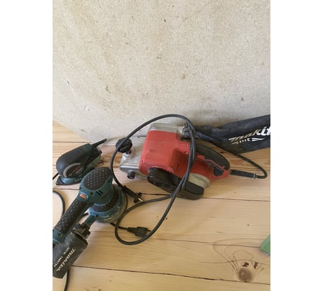 Работа с пылесосом возможна, но без углового переходника работать очень неудобно - места под руку не остается. Сам патрубок пылеудаления вроде бы стандартного для макиты диаметра, но насадка пылесоса на орбитальной машине держится с натягом, а здесь его постоянно надо поправлять. Мешок под пыль довольно неважного качества и забивается при шлифовке полов минут за пять-семь. Короткий шнур, понятно, что модель удешевленная относительно профессиональной серии, но много ли сэкономили с 1-2 метра кабеля? Модель тяжелая, для длительной и прецизионной работы на вертикали или в потолочном положении нужно быть силачом. Ленты хорошего качества под эту машинку приходится только заказывать - в регионах 100*610 в магазинах как правило не найти, даже ширпотреба вроде фит.
