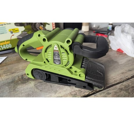 Шлифмашинка оказалась на удивление хороша в работе. Нагрузки пока ей было не особо много, но там где пригодилась, отработала добротно. Из плюсов в первую очередь отмечу резиновый (!) шнур питания -- при температуре несколько градусов ниже/выше нуля НЕ ДУБЕЕТ -- остаётся гибким, послушным. А салатовая штепсельная вилка, в тон инструменту, вообще кайф -- очень это сберегает нервы, когда розеток мало и приходится подключать/отключать то один инструмент, то другой. Машинка лёгкая, приемистая, лента держится на валиках вполне надёжно, если не давить безмозгло на инструмент. Настораживает пыль и крупные частицы дерева (при работе с фанерой, доской и ДСП), которые забивают вентотверстия движка (правда, я не пользовался мешком или пылесосом), но перегрева или иных последствий от этого пока не замечал. Хороший инструмент за такую цену.