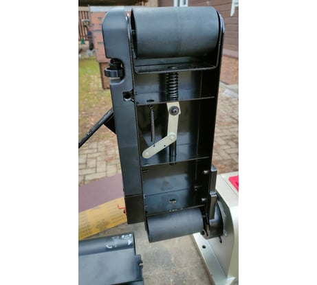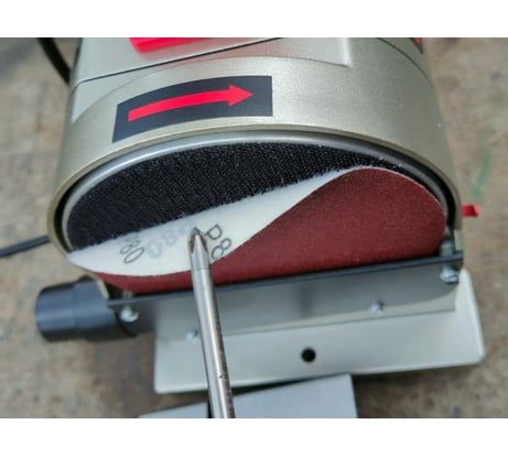 Прекрасно и надежно упакован. Две площадки упора, углы регулируются. Хорошая мощность, затормозить вращение ленты почти не возможно. Шлифовальные круг и лента держатся хорошо, зерно Р80. Китайцы молодцы, что расположили блок вкл/выкл на верхней части - можно работать как с фронта так и сзади , а ещё предусмотрели там место для ключа.