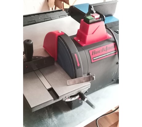 Выводы пылеудаления. Вообще не понятно по какому стандарту сделаны. Тут свобода для творчества. Я решил переходником с озона и изолентой))). Покраска вроде удовлетворительна, красили явно после сборки. Провода из двигателя внутри корпуса - в краске.. Болтаются выводы из корпуса кабелей питания и магнитного пускателя. Стол ленточного узла с левой стороны менее жёсткий, но это нормально при одностороннем креплении. Грубовато отшлифован стол дискового узла. В принципе это мелочи, надеюсь больше недостатков не проявится.