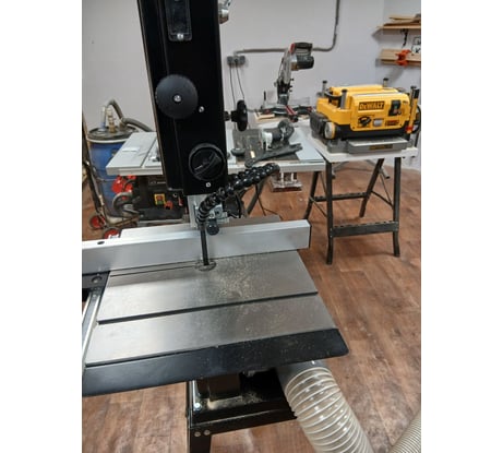 Большой чугунный стол с выдвижной боковой поддержкой обеспечивает устойчивость крупных заготовок. Надежный параллельный упор с быстрой фиксацией и угломер позволяют выполнять повторяемые точные резы. Дополнительные удобства — светодиодная подсветка, щетка для очистки маховика и эффективное пылеудаление — делают работу с BS1001 комфортной и безопасной. Это идеальная пила для столярной мастерской.
