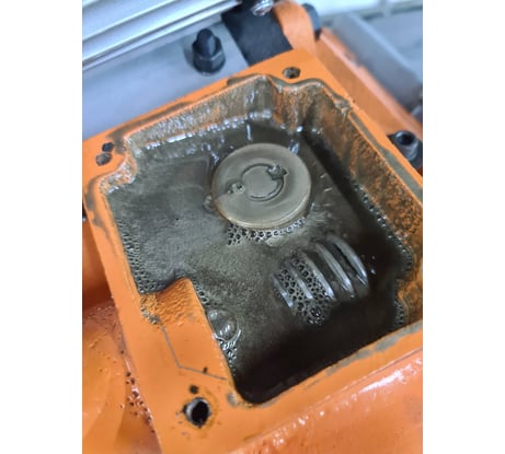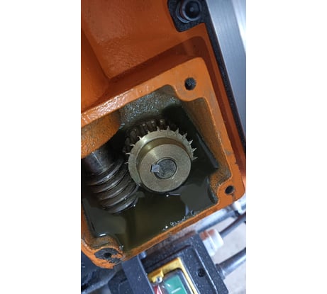 На штатном масле слизало колесо червячной передачи. Уровень проверял, не перенагружал, но после примерно 100резов перестало вращаться полотно. Заказал новую шестеренку, поставил, забил густой смазкой предназначеной именно для червячной передачи. Буду ждать когда слижет вновь. Фото где жидкое масло это то что было залито. Фото где грязное масло это то что с ним стало после 100резов Фото где черная густая смазка, это как сделал сейчас. Надеюсь послужит.