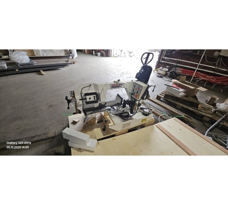 Пожалуй оптимальный набор опций "взрослых" станков за минимальные деньги. А именно: 1. Большой размер заготовки (а его всегда оказывается мало :)) 2. Широкое пильное полотно (а это повышенная живучесть полотна, более ровный рез) 3. Большая длина полотна ( и снова повышенная живучесть) 4. Система СОЖ (снова живучесть полотна, более чистый и ровный рез) 5. Поворотная рама, а не тиски. Для тех кто не понимает разницы: При отпиливании заготовки под углом от длинного хлыста, при поворотных тисках на станке, нужно разворачивать весь хлыст вместе с тисками, то есть нужно "махать" трех, а то и шести метровым хвостом по всей мастерской. Где же столько места взять? А при поворотной раме, как на этом станке, поворачивается сама пила на нужный угол, а хлыст как лежал на подставках, так и остается лежать. Очень удобная опция! 6. Тензометр. Легко выставить нужное натяжение полотна. (снова его живучесть) 7. Гидроразгрузка. 8. Редуктор. 9. Мощная литая рама. 10. Мощные тиски с функцией быстрого зажима.