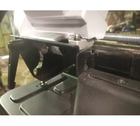 У такого типа станков, должна крутится голова с мотором, а не тиски. Точность реза нулевая, уводит. Выставить не получается. Буду колхозить, либо под 45 новые отверстия сверлить