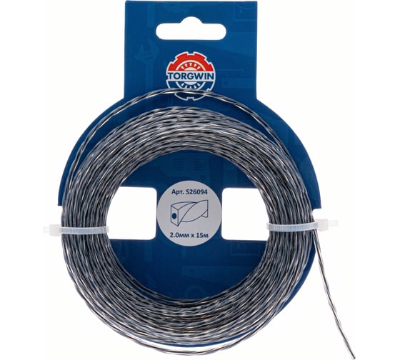 Леска для триммера 2 мм, 15 м, витая с графитовым сердечником, серебро tgs TORGWIN S26094
