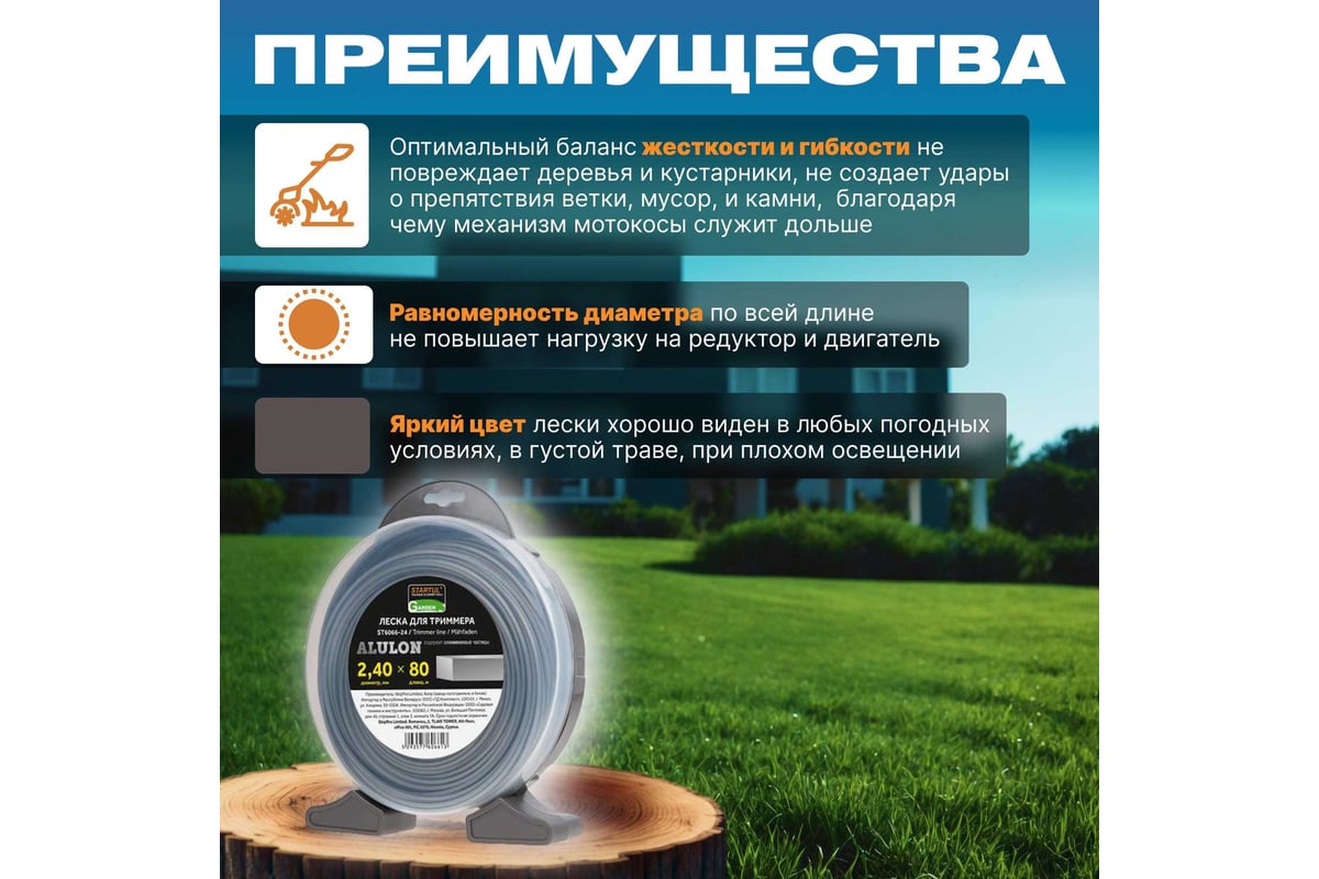 Сопутствующие товары для лески STARTUL Garden ALULON 2.4 мм, 80 м, сечение квадрат
