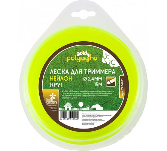 Леска для триммера POLYAGRO Gold "звезда" 2,4ммx15м (в блистере) 7704410