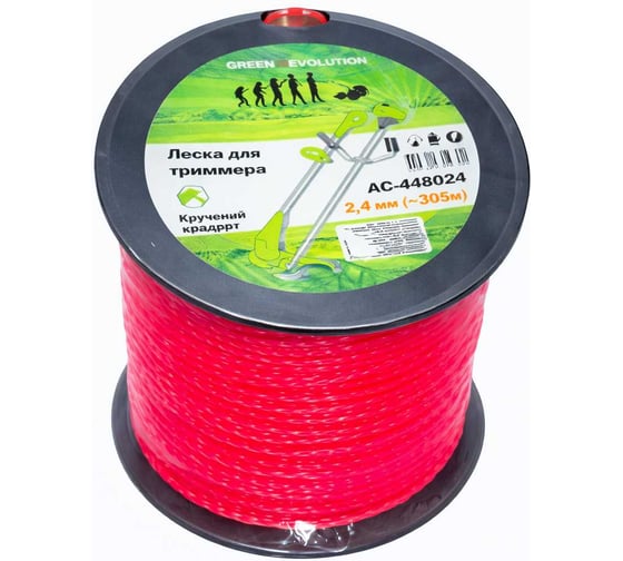 Леска для триммера GREEN REVOLUTION 2.4 мм крученый квадрат (в бобине 480м +/-5%) (100% нейлон) ЛС-448024