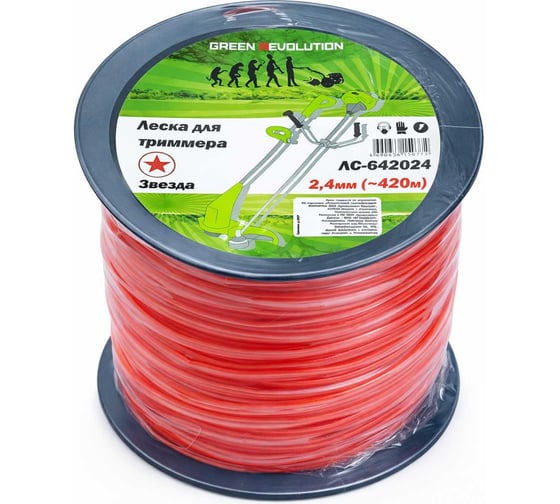 Леска для триммера GREEN REVOLUTION 2.4 мм звезда (в бобине 420м +/-5%) (100% нейлон) ЛС-642024