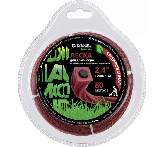 Леска для триммеров 2,4 мм 80 м квадрат витой армированная графитовым сердечником Diamond Industrial DIDTRIM2480KV