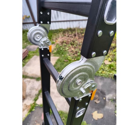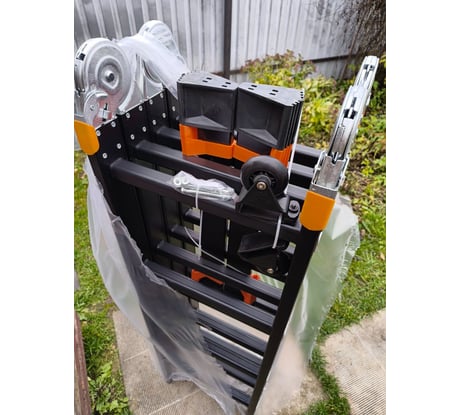 Это первая "лестница-трансформер" с которой работал, поэтому отзыв субъективный. Начнем с упаковки, а упаковано все крайне надежно. Сама лестница с комплектацией затянута в полиэтилен и уложена в картонную коробку. Комплектующие притянуты стяжками к самой лестнице. Визуально качество изготовления хорошее, придраться не к чему. Ничего не болтается, у замков фиксация четкая. По надежности только время покажет. Толщина профиля 1,7 и 1,2мм (стенки профиля разной толщины см.фото), как у других производителей не знаю. Так же в комплекте идут колеса для установки на один из опорных профилей, но я их не ставил.