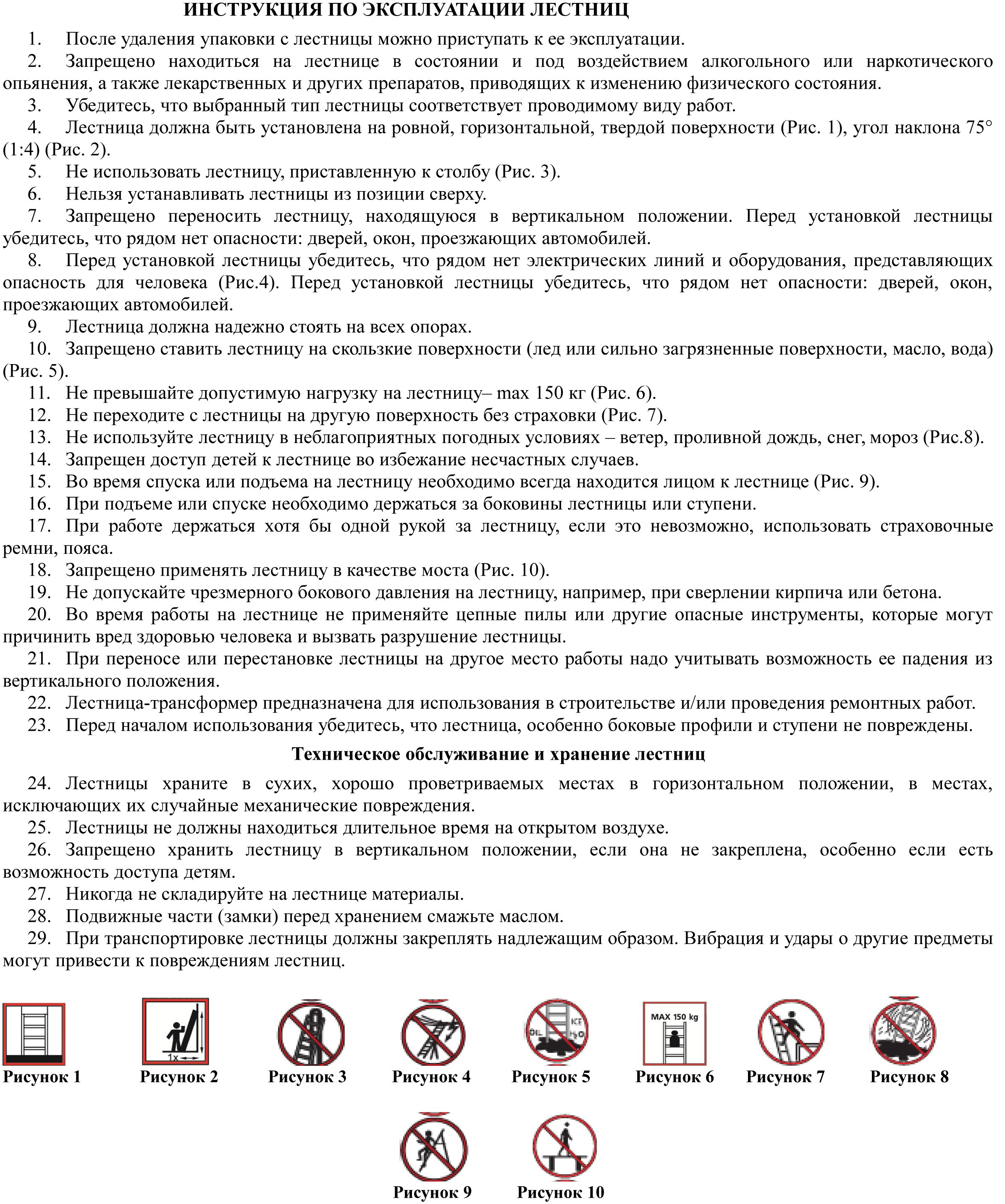 Профессиональная лестница изготавливается из алюминия высокого качества с повышенной устойчивостью к коррозии, что выгодно увеличивает срок эксплуатации лестницы. Снабжена высокопрочными узлами шарнирных замков «Super Pro» из легированной стали. Это обеспечивает простоту использования лестницы и гарантирует качественную фиксацию шарниров. Шарнирные замки надёжно впрессованы в направляющий усиленный профиль размером 60х30х1,5 мм и расклёпаны цельнометаллическими заклёпками. Усиленный профиль ступеней 28х28х1,5 мм, обеспечивает высокую стойкость к нагрузкам. Рифленые ступени гарантируют надёжное сцепление стопы с поверхностью. Это премиум сегмент лестниц благодаря повышенной надёжности и качественному крашенному покрытию, которое бережёт лестницу от износа, не оставляет алюминиевого следа на руках и придаёт современный стильный вид вашей лестнице.Максимальная рабочая высота – 10,05 м. Высота приставной лестницы – 9,15 м.Высота в режиме стремянка – 4,45 м.Высота в режиме помост – 2,38 м.Высота в сложенном виде – 2,35 м.Ширина лестницы 350 мм позволяет комфортно проводить работы. Ступени закреплены методом многократной развальцовки, что обеспечивает высокую прочность и долговечность конструкции. Лестница-трансформер быстро и легко складывается, может уместиться в багажнике автомобиля. Габариты лестницы в сложенном состоянии – 2350х250х350 мм. Максимальная нагрузка - 150 кг, в режиме помост – 120 кг.