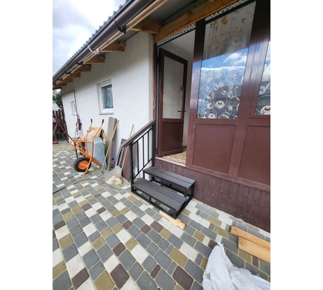 Хорошая лестница, примерил под фундамент, получилась меньше по высоте, ну ничего. Жаль нет лестницы на другую сторону перила. Прочная, упакована была хорошо, привезли прям к воротам дачи